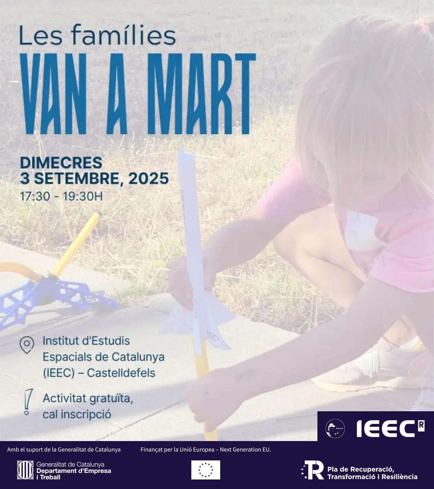 Families Go to Mars is an afternoon to discover, play, and dream about space together as a family. Organized by the Hypatia Mars Association, with the collaboration of the Institute of Space Studies of Catalonia (IEEC), the activity will take place on Wednesday, September 3, 2025, at the IEEC headquarters in Castelldefels.