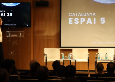 Antes, durante la mañana, los participantes asistieron al encuentro anual DCA-NewSpace, organizado por la Fundación i2CAT, donde conocieron los principales objetivos de la Estrategia Catalunya Espai 2030 de la mano de Maria Galindo, secretaria de Políticas Digitales de la Generalitat de Catalunya.