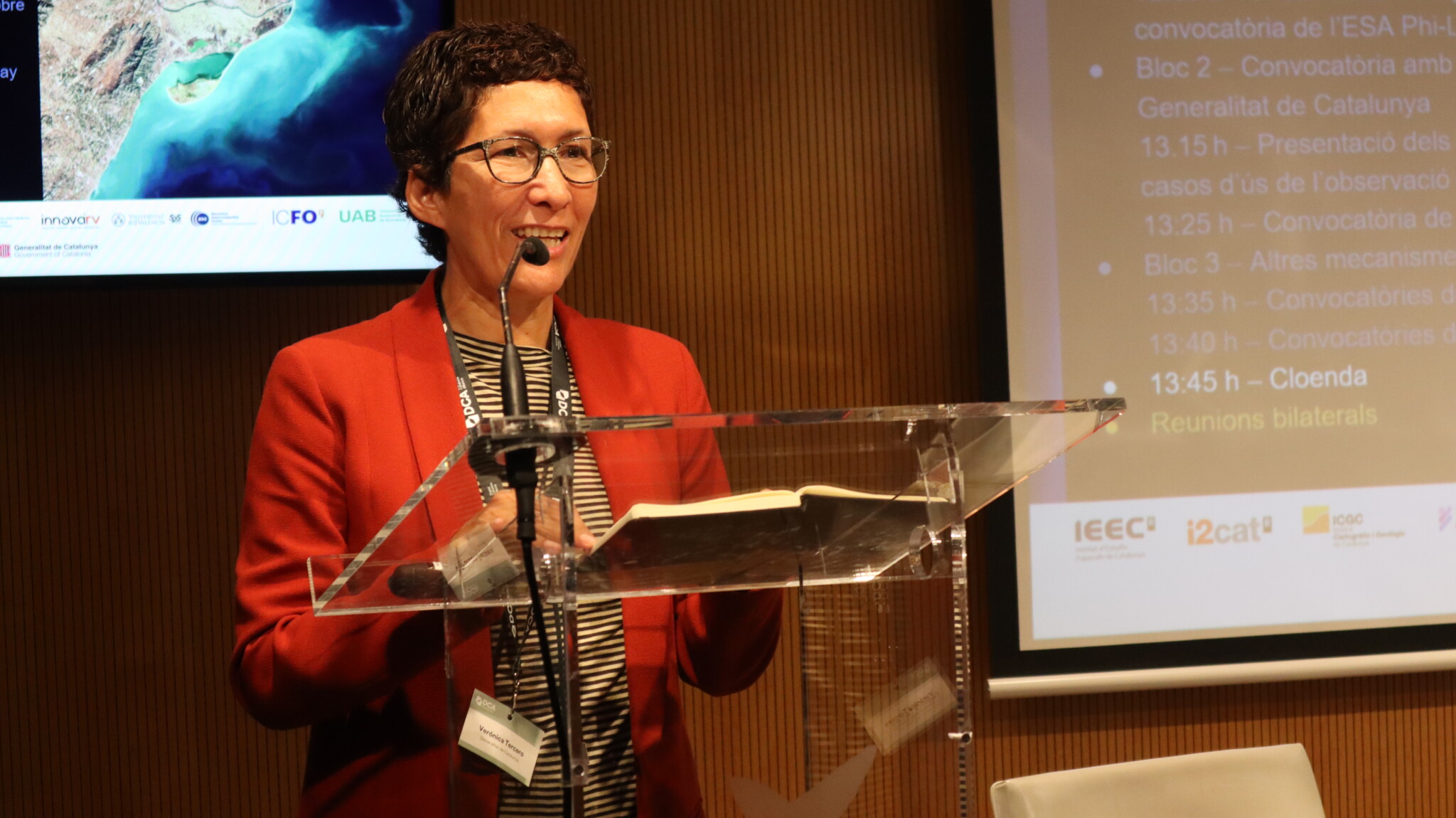 Durante la presentación del programa ESA Phi-Lab Spain, Pepa Sedó, responsable de la Oficina de Desarrollo e Innovación del IEEC, y Estel Blay, gestora de programas de la misma oficina, presentaron la red y sus servicios, y explicaron los requisitos de la nueva cut-off date, prevista para el 24 de febrero de 2026.